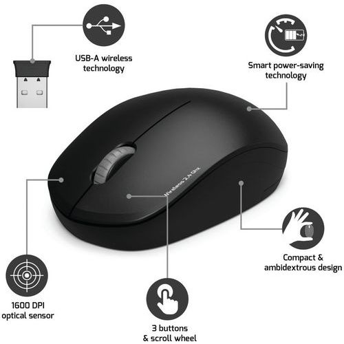Opslag met USB-ontvanger in de muis. 2,4 Ghz draadloze technologie (20 meter bereik).