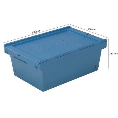 In- en op elkaar te stapelen voor maximale ruimtewinst. Euronorm-afmetingen dus ideaal voor transport. Beperking van de verpakkingen dankzij het geïntegreerde, inklapbare deksel. Gladde binnenwanden voor een optimale benutting van het volume. Beschikbaar in 4 afmetingen.