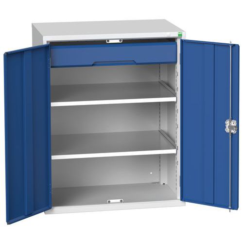 Constructie van plaatstaal met verstevigde deuren Gegalvaniseerde stalen legborden, verstelbaar in stappen van 25 mm Belasting per legbord en lade 60 kg Binnenlades gemonteerd op lagers Diepte 550 mm Veiligheidstips: - installeer het meubilair op een vlak oppervlak - bevestig het op een muur of scheidingswand met een geschikte bevestiging - ervoor te zorgen dat de maximale aanbevolen belasting niet wordt overschreden, evenals de juiste verdeling ervan Gemaakt in het UK Max. belasting per legbord (kg) : 75 Max. belasting (kg) : 1000