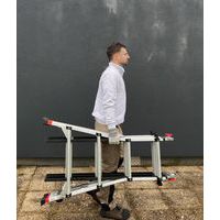 Ladder 4x4 voor meerdere posities, met 2 onafhankelijk verstelbare poten en 2 vlakken met verstelbaar niveau. Eenvoudig te vervoeren en op te bergen. 2 standen: recht of dubbelzijdig inzetbaar. Voor professioneel, veelzijdig en eenvoudig gebruik onder alle omstandigheden. Uitschuifbare delen.