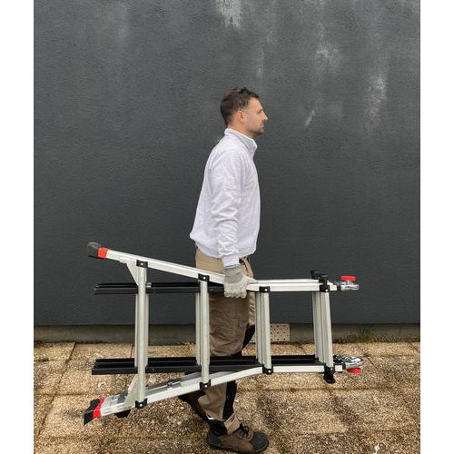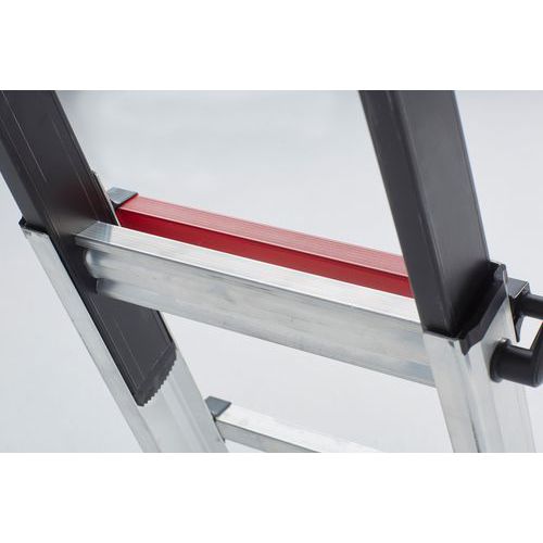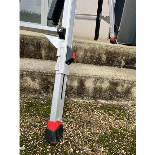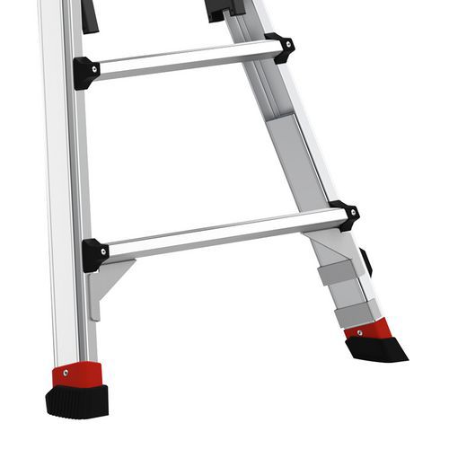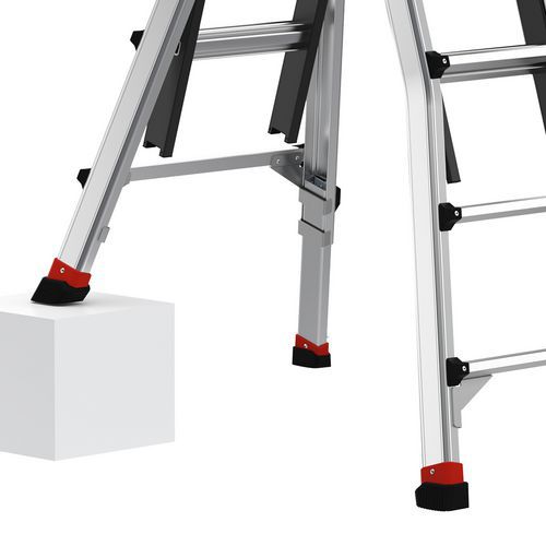 2 onafhankelijk verstelbare poten aan één kant. Universele ladder. Voeten verstelbaar over 24 cm.