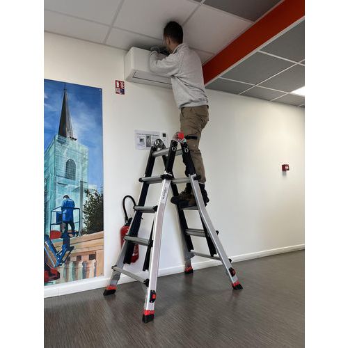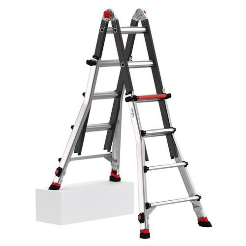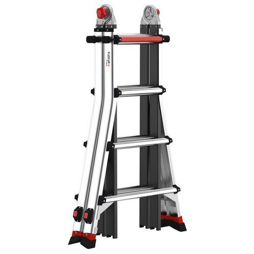 Vouwladder multifunctioneel Flex'up+ met 2 verstelbaar poten, Materiaal: Aluminium
