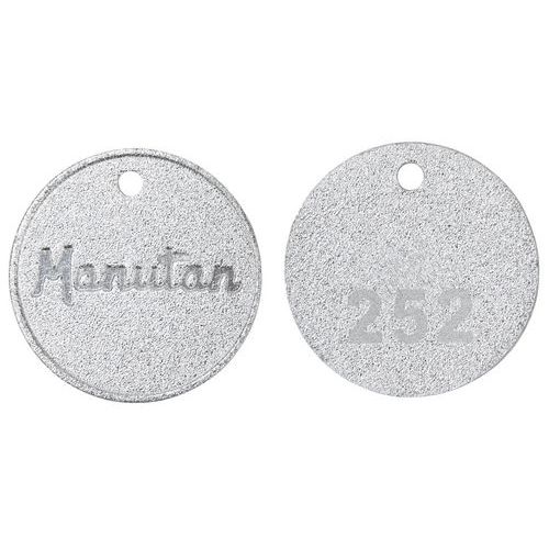 - Muntje met nummer Manutan van 001 tot 300 van aluminium.