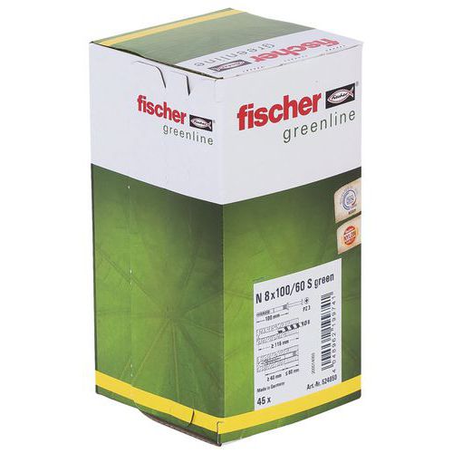 | Productnaam | Nagelplug N Green 8 100 60 S, Plug lengte: 100 mm, Ø: 8 mm, Materiaal: Nylon, Type steun: Hout |