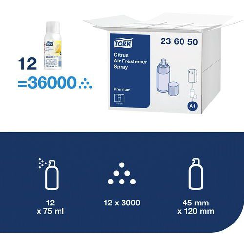 Navulling voor automatische luchtverfrisser Tork, Verpakking: Spuitbus, Inhoud: 75 mL, Geur: Citrus