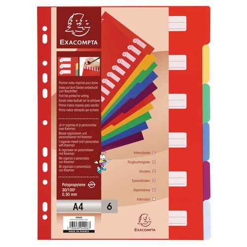 Neutrale tabbladen Exacompta - Polypropyleen - Verschillende kleuren - A4