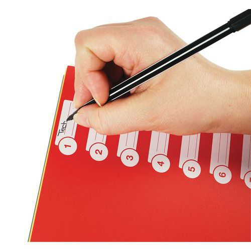 - Indexblad voorzien van witte zones voor het noteren van de inhoud van ieder tabblad.