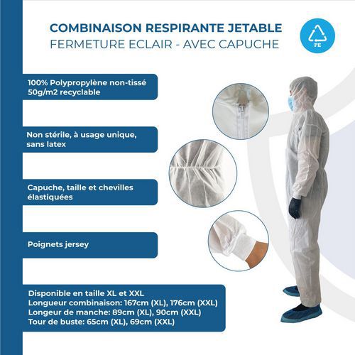 | Productnaam | Niet-gecertificeerde wegwerpoverall van PP, XXL, Type kledingstuk: Werk overall, Materiaal: Polypropyleen |