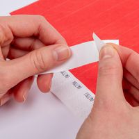 - Geleverd in een vel met 10 armbanden met scheurlijnen voor eenvoudige distributie op de plaats waar de deelnemers zich melden.
