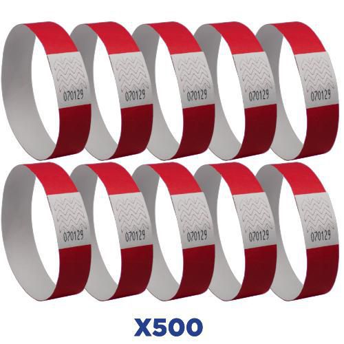 Niet-scheurende armband van Tyvek-papier, Breedte: 1.9 cm, Kleur: Rood
