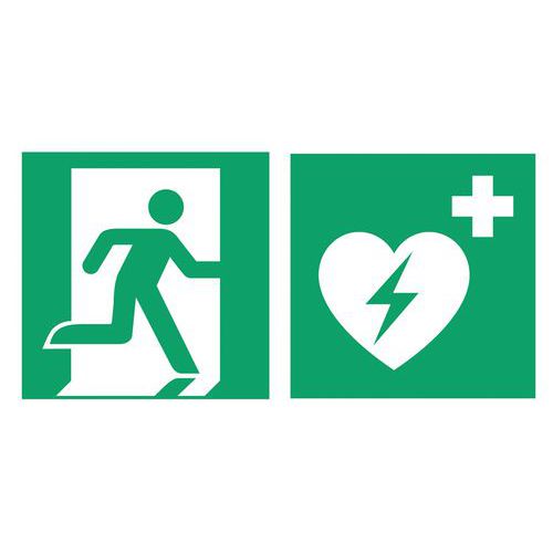 - Met dit noodbord verkort u de interventietijd door duidelijk aan te geven dat een defibrillator aanwezig is.