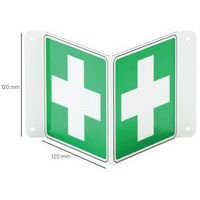 Bord Eerste hulp, dubbelzijdig, V-vormig, aluminium, Zelfklevend: nee, Stijf: ja, Paneel vorm: Vierkant