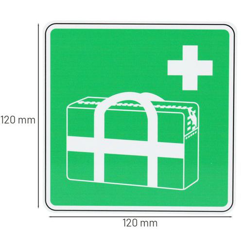 - Geef met dit bord aan waar zich EHBO-materiaal bevindt.