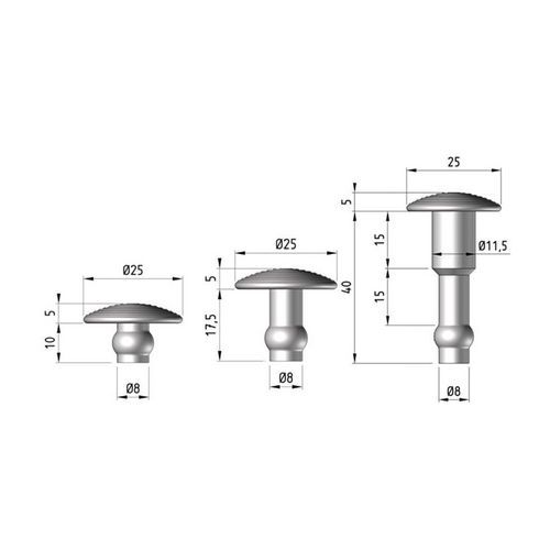 | Productnaam | Nop podotactiele om vast te spijkeren CALYPSO, Materiaal: Staal, Kleur: Grijs, Lengte: 25 mm, Breedte: 25 mm |