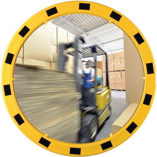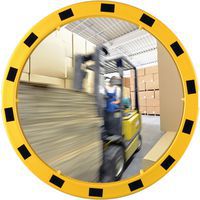 Bewakingsspiegel, ideaal voor het bewaken van productieruimtes om ongevallen en diefstal te voorkomen. Vervormingsvrij zicht. Eenvoudig te installeren dankzij de flexibele bevestigingsbeugel. Schokbestendig conform DIN ISO 179-1. TÜV-certificaat.