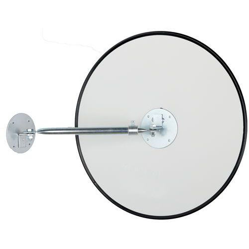 Universele bewakingsspiegel, ideaal in industriële ruimtes, garage-uitgangen, enz. Gemaakt van acryl, beter bestand tegen schokken dan glas. Uitstekende beeldfeedback zonder vervorming door metallisatie aangebracht op de achterkant. Schokbestendig conform DIN ISO 179-1. TÜV-certificaat. De arm kan alleen verticaal van rechts naar links / van links naar rechts worden gedraaid. De arm is telescopische uitschuifbaar van 30-50 cm. Gemaakt in de EU