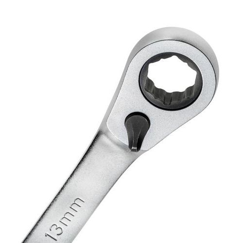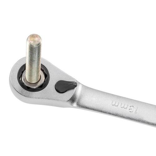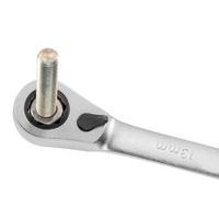 - Innovatieve bevestigingsfunctie in de kop van de ratelsleutel om de moer of de bout veilig te geleiden zonder te verschuiven.