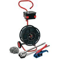 - Een kant-en-klaarpakket Spanband WG en gespen (13 mm: 250 m / 100 gespen, 16 mm: 200 m / 80 gespen).