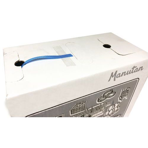| Productnaam | Omsnoeringsdoos PP blauw, Weerstand: 136 kg, Breedte: 12 mm, Dikte: 0.55 mm, Lengte: 600 m |