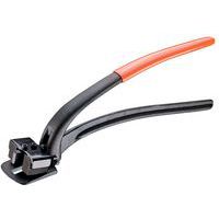 - Dit model schaar is geschikt voor metalen omsnoeringsband tot 32 mm breed en heeft een veiligheidspal om het band na het knippen vast te houden.