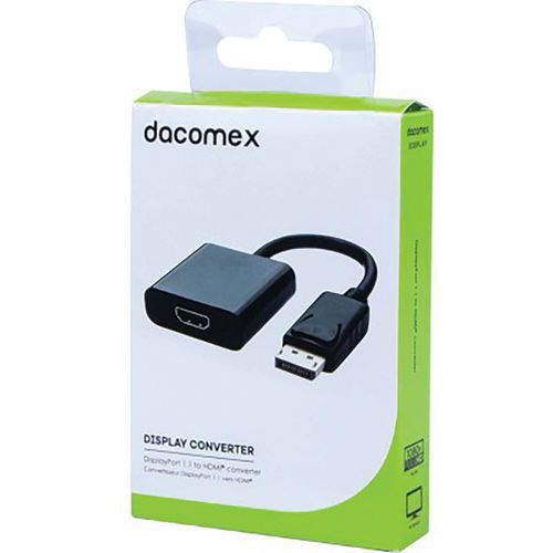 | Productnaam | Omvormer DisplayPort 1.1 naar HDMI DACOMEX, Kleur: Zwart, Type nr.: 199038, Video-uitvoerconnector: HDMI |
