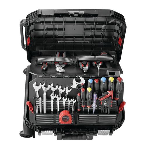 | Productnaam | Onderhoudskoffer met wielen, Aantal gereedschappen: 39, Model: Algemeen onderhoud, Gewicht: 11.9 kg |