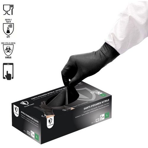 Onderzoekshandschoen van nitril – zwart – OneProtek, Materiaal: Nitril, Gebruik voor voedsel: ja
