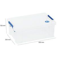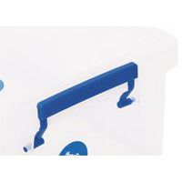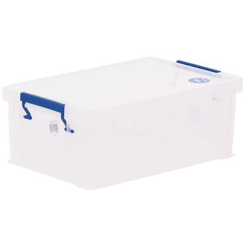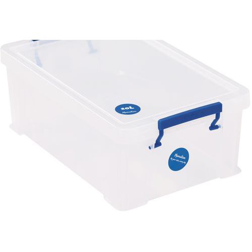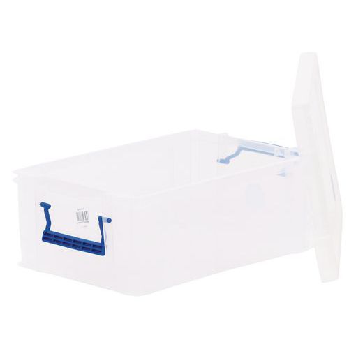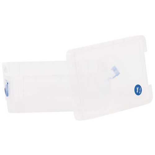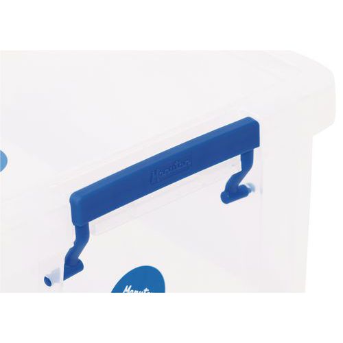 Stevige en zeer stabiele opbergbak. Praktisch, eenvoudig te transporteren dankzij de handgrepen. Snelle herkenning van voorwerpen in de bak dankzij de transparantie.