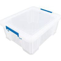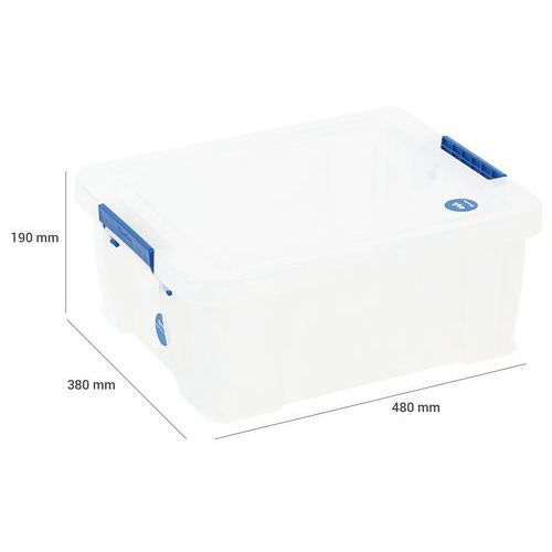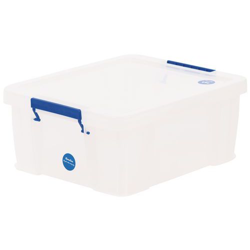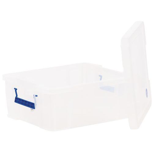 Stevige en zeer stabiele opbergbak. Praktisch, eenvoudig te transporteren dankzij de handgrepen. Snelle herkenning van voorwerpen in de bak dankzij de transparantie.