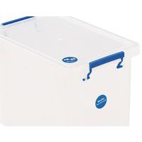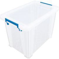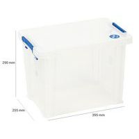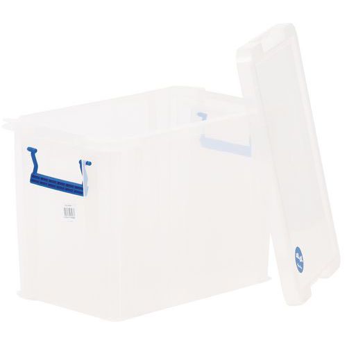 Stevige en zeer stabiele opbergbak. Praktisch, eenvoudig te transporteren dankzij de handgrepen. Snelle herkenning van voorwerpen in de bak dankzij de transparantie. Gemaakt in het UK Max. belasting (kg) : 200 kg NSF gecertificeerd