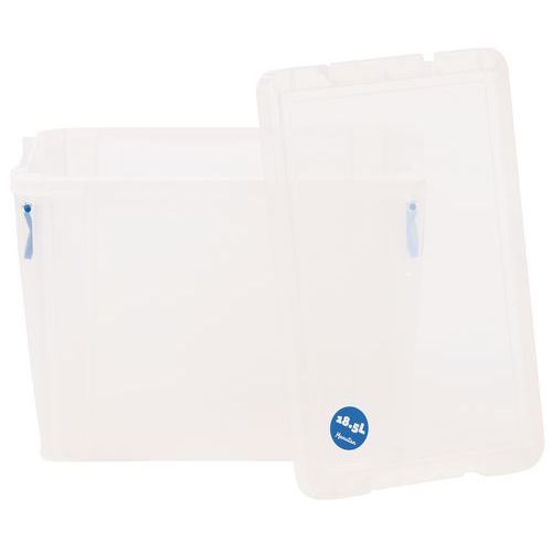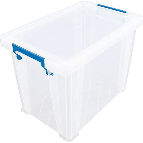 Stevige en zeer stabiele opbergbak. Praktisch, eenvoudig te transporteren dankzij de handgrepen. Snelle herkenning van voorwerpen in de bak dankzij de transparantie.