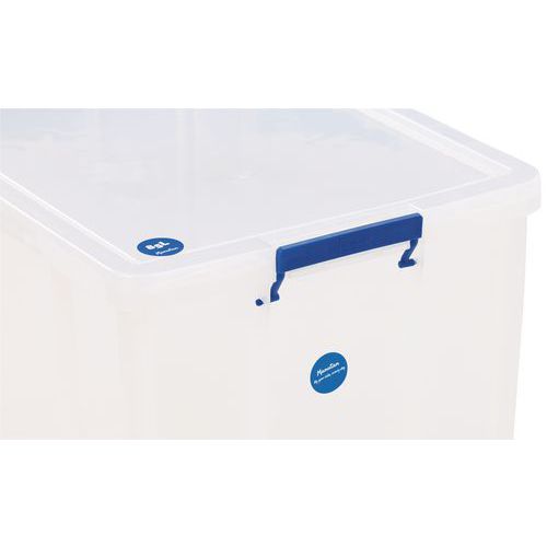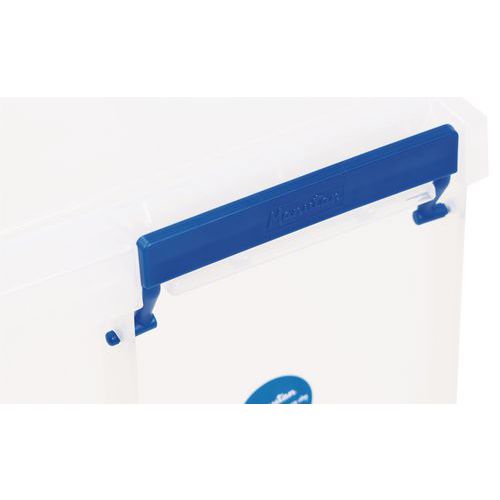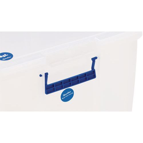 Stevige en zeer stabiele opbergbak. Praktisch, eenvoudig te transporteren dankzij de handgrepen. Snelle herkenning van voorwerpen in de bak dankzij de transparantie.