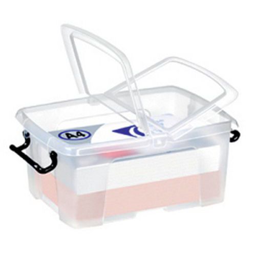 Robuuste kunststof bak met massieve versterkte wanden, 4 zijden. Dankzij de conische vorm kunnen ze perfect in en op elkaar worden gestapeld. Eenvoudig toegang aan beide kanten dankzij deksel met dubbele klep. Bak met efficiënte clipsluiting en 2 stevige handgrepen. Gemaakt in het UK Klantgarantie : 5 jaar