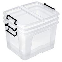 Robuuste kunststof bak met massieve versterkte wanden, 4 zijden. Dankzij de conische vorm kunnen ze perfect in en op elkaar worden gestapeld. Eenvoudig toegang aan beide kanten dankzij deksel met dubbele klep. Bak met efficiënte clipsluiting en 2 stevige handgrepen. Gemaakt in het UK Klantgarantie : 5 jaar