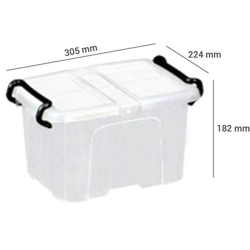 Robuuste kunststof bak met massieve versterkte wanden, 4 zijden. Dankzij de conische vorm kunnen ze perfect in en op elkaar worden gestapeld. Eenvoudig toegang aan beide kanten dankzij deksel met dubbele klep. Bak met efficiënte clipsluiting en 2 stevige handgrepen. Gemaakt in het UK Klantgarantie : 5 jaar