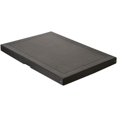 Opbergdoos PureBox Black. Deze strakke, onbedrukte, plasticvrije kartonnen doos is perfect voor het opbergen van sieraden, foto's, documenten, radio's of andere persoonlijke spullen. Ook ideaal als geschenkverpakking. De praktische handvatten, de opschrift velden en verstevigingsgroeven op het deksel zijn het bewijs van de kwaliteit van het ontwerp. Deze producten zijn niet alleen praktisch, maar ook ecologisch, 0-plastic, met een kartonnen lint eromheen en Blauwe Engel, FSC-certificering en veganistisch. Deze doos wordt geleverd gemonteerd omringd door een kartonnen lint. Verschillende beschikbare formaten en hoogtes bieden u een ruime keuze en voldoen aan alle behoeften.