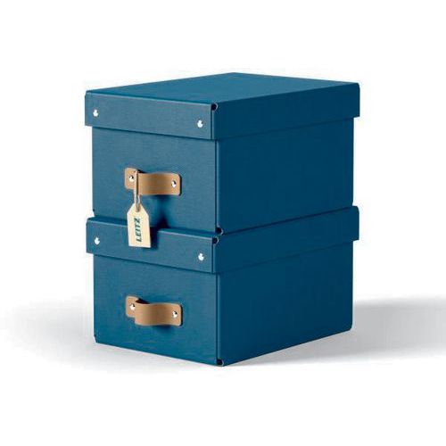 - Functioneel ontwerp: lederen handgreep om gemakkelijk dozen van planken of kasten te verwijderen, matte afwerking in harmonieuze aardse kleuren.