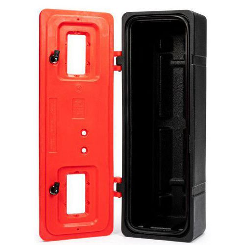 Opbergkoffer voor brandblusser 9 tot 12 kg met sleutelslot, Materiaal: Polyethyleen, Kleur: Rood/zwart