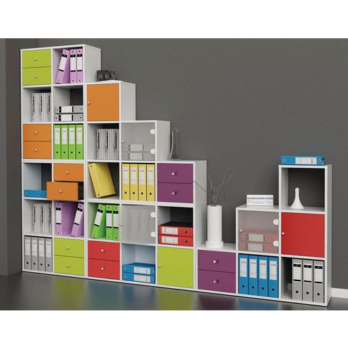 Monteer een kast die helemaal is afgestemd op de omgeving, waar u maar wilt. Voeg laden en/of deuren toe (als optie leverbaar) aan de modules. Ideaal voor het scheiden van ruimten of om te beschikken over opbergruimte onder een trap, een raam of een mansarde