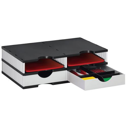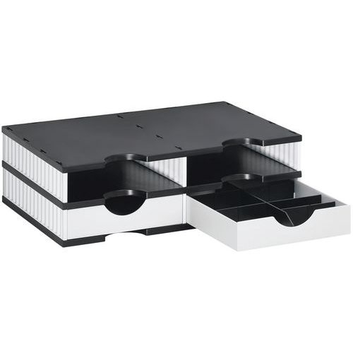| Productnaam | Opbergsysteem met aanpasbare laden Styrodoc Duo Set, Materiaal: Slagvast polystyreen, Totale hoogte: 15.3 cm |