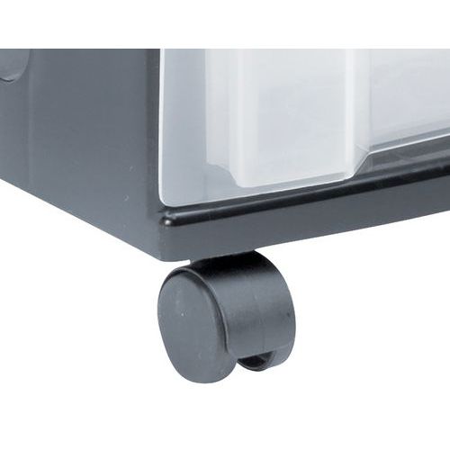 Ladeblok gemonteerd op 4 zwenkwielen voor een maximale wendbaarheid. Transparante laden zodat de inhoud beter te zien is . Gesloten voor een maximale bescherming tegen stof. Toren met aparte zones op de zijkant voor een eenvoudige etikettering.
