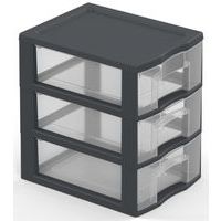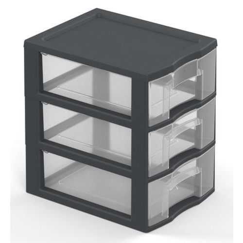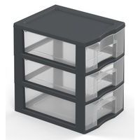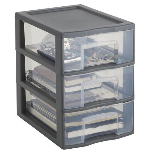 Van 40% gerecyclede kunststof. Eenvoudig stapelbaar. Lades met aanslagen tegen eruit vallen. Kruistop voor het plaatsen van kleine voorwerpen. Ergonomische handgreep op elke lade. Opberglade XL: 38,5 x 37 x 14 cm.