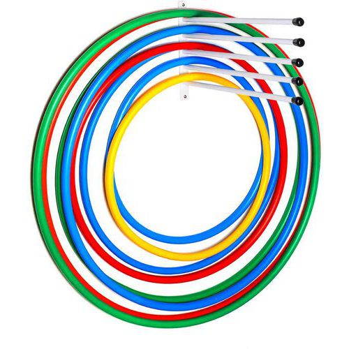 | Productnaam | Opbergwandrek voor hoepels, Materiaal: Staal, Hoogte: 26 cm, Lengtes: 45 cm, Kleur: Wit/zwart |