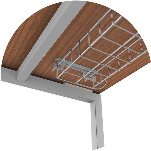 Open metalen kabeldoorgang (optioneel) is een zeer nuttig en voordelig accessoire voor het samenhouden van kabels en stekkerdozen onder het bureaublad, om vloerruimte vrij te maken, eenvoudig schoon te maken en om een opgeruimde aanblik te creëren.