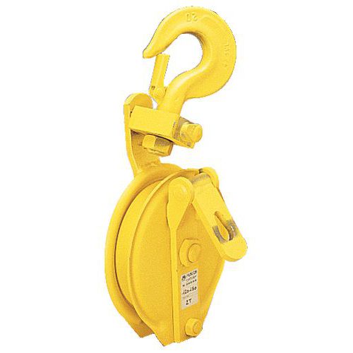 - Stalen blokschijf met wartelhaak met veiligheidspal.