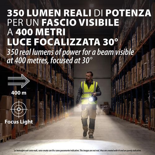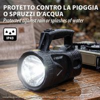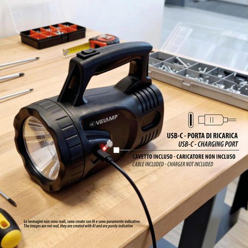Oplaadbare led-zaklamp uitgerust met een krachtige LED van 3 W. De meegeleverde Li-ion-batterij van 3,7 V en 2000 mAh biedt een gebruiksduur van 2 uur op vol vermogen en 5 uur op verminderd vermogen (50 %). Opladen via een USB-C-poort (kabel meegeleverd, oplader niet meegeleverd). Lichte werklamp met een behuizing van ultrasterk ABS. Grote handgreep, comfortabel zelfs met handschoenen aan, de ideale metgezel voor de industrie, professionals, wandelen, trekking en kamperen. Ondanks haar kracht blijft de oplaadbare zaklamp zeer licht en ligt ze goed in de hand, wat haar zeer praktisch maakt. Geschikt voor alle gelegenheden: wandelingen, kelder, bouwplaatsen, auto's. Waterdichtheid IP43: geschikt voor gebruik binnen en buiten. Inclusief schouderband.