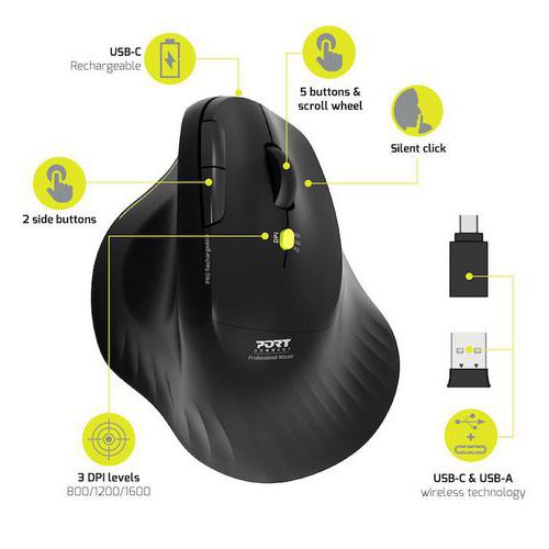 Muis ergonomisch Bluetooth Ergo Soft - Rechtshandig - Port Connect