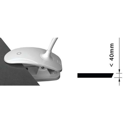 Oplaadbare 2-in-1 led-lamp met 6 led-lampen, voorzien van een clip en een tafeladapter: kan worden bevestigd aan een plank of op een oppervlak worden geplaatst.