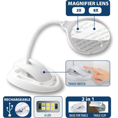 Oplaadbare led-lamp met loep, dioptrie 3 en 8 - Velamp