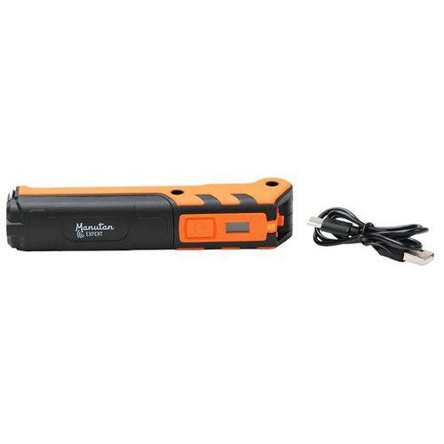 2-in-1 werklamp: de COB-led van 3 W biedt een krachtig wit werklicht voor het verlichten van een groot gebied. De led-zaklamp is voorzien van een ledlamp met hoog vermogen van 3 W, ideaal voor gebruik als schijnwerper voor verlichting over lange afstanden. 270° draaibaar: de werklamp kan gebogen of gedraaid worden met een maximale rotatiehoek van 270 graden. De lamp kan vanuit verschillende hoeken verlichten. Uitstekend voor de reparatie van auto's, als verlichting in huis, bij stroomuitval, als noodverlichting, enz. De lamp bevat een oplaadbare Li-ionbatterij van 3,7 V, 2000 mAh (type 18650).